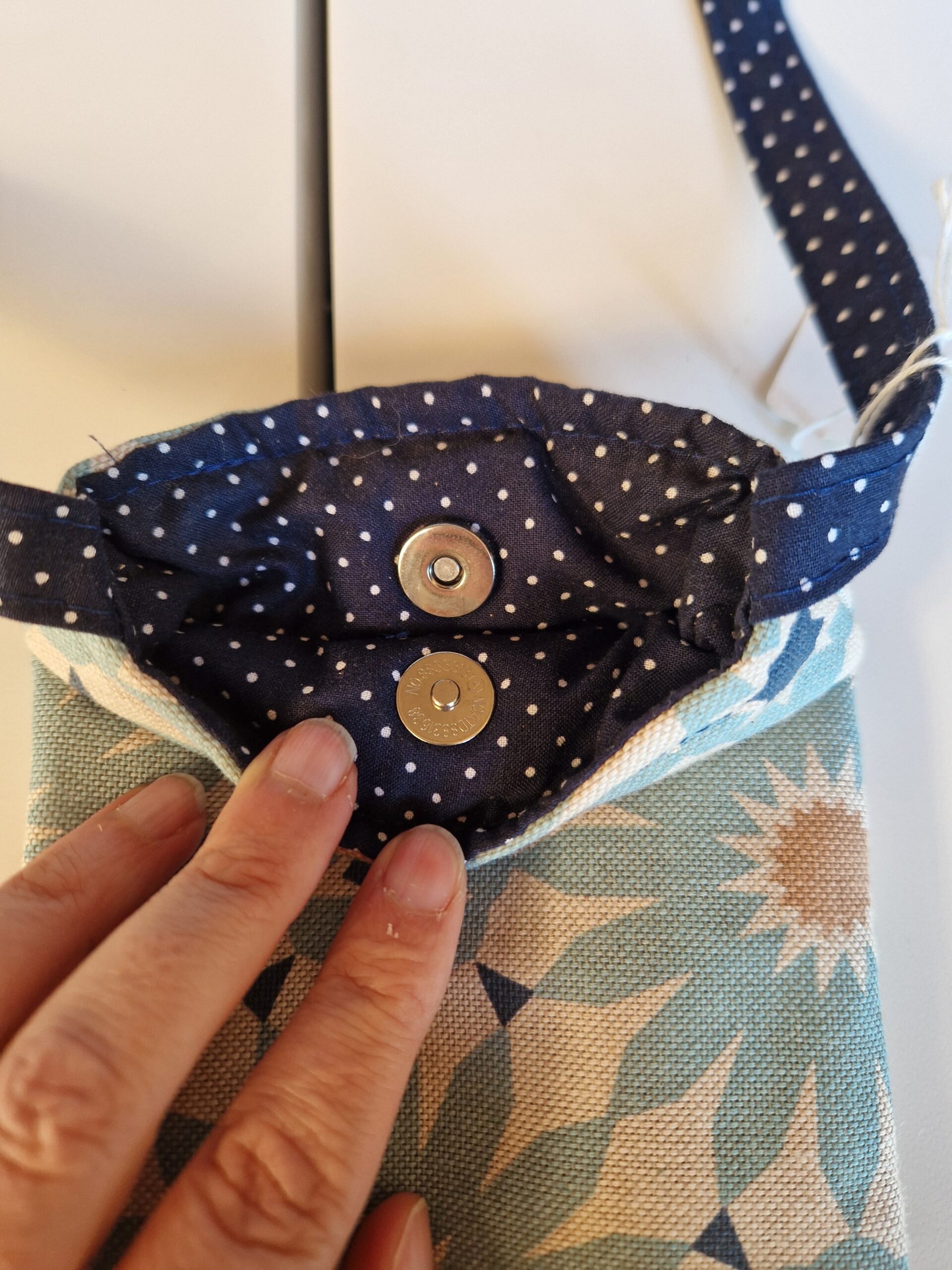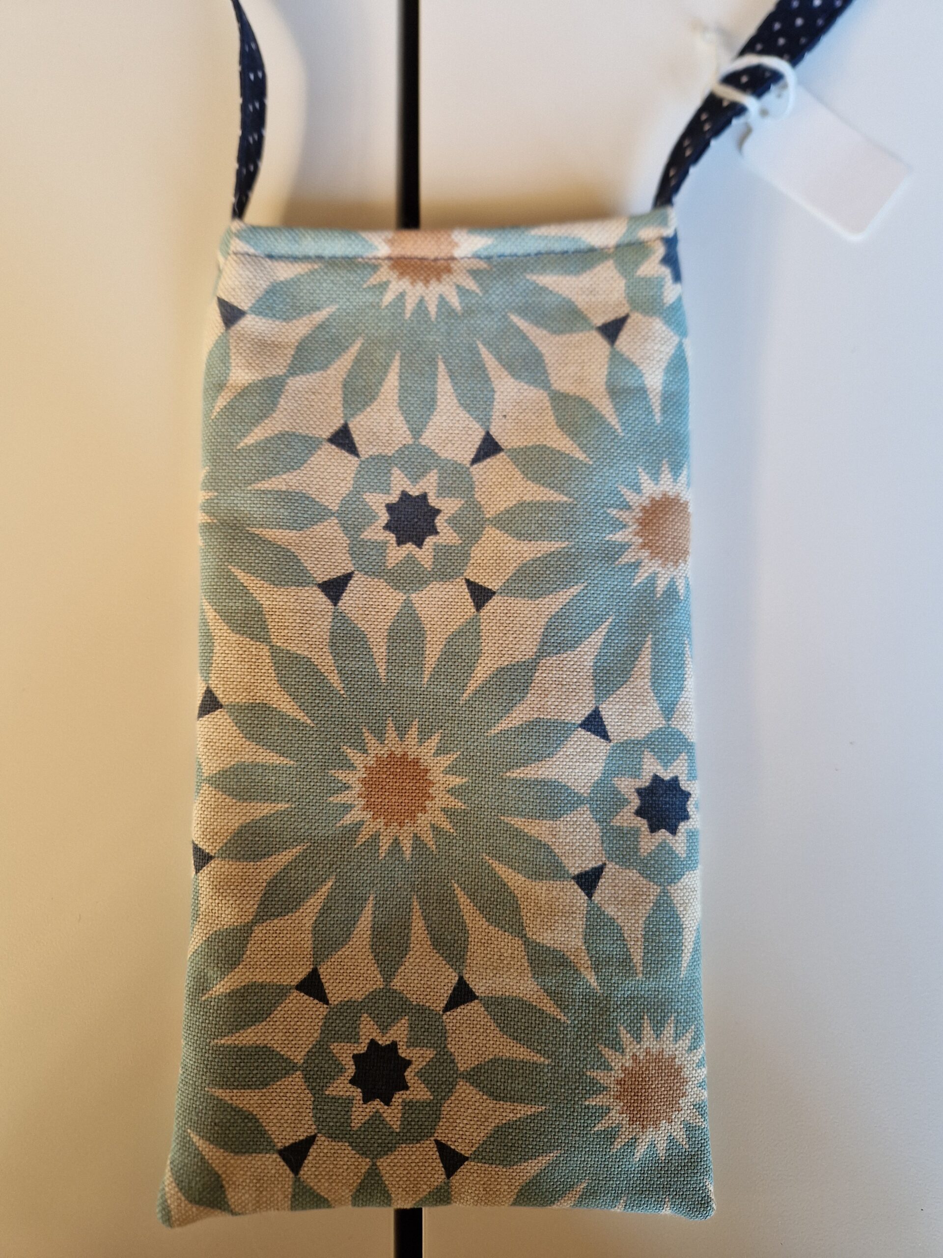 Petit sac, pochette, sacoche pour transporter votre téléphone portable partout avec vous. Il est légèrement rembourré pour protéger votre appareil et entièrement doublé d’un tissu assorti. Il se ferme grâce à un bouton pression aimanté.