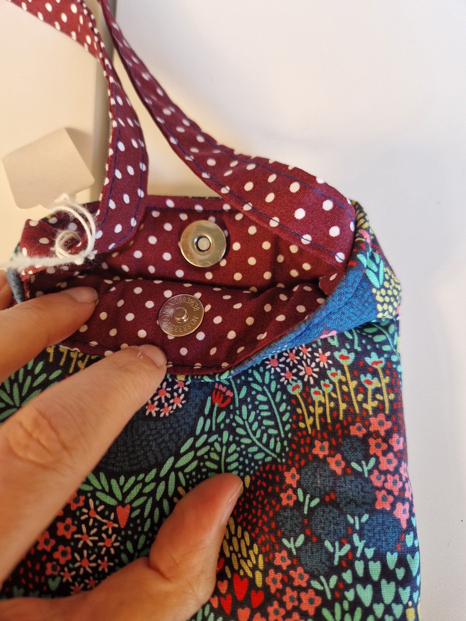 Petit sac, pochette, sacoche pour transporter votre téléphone portable partout avec vous. Il est légèrement rembourré pour protéger votre appareil et entièrement doublé d’un tissu assorti. Il se ferme grâce à un bouton pression aimanté.