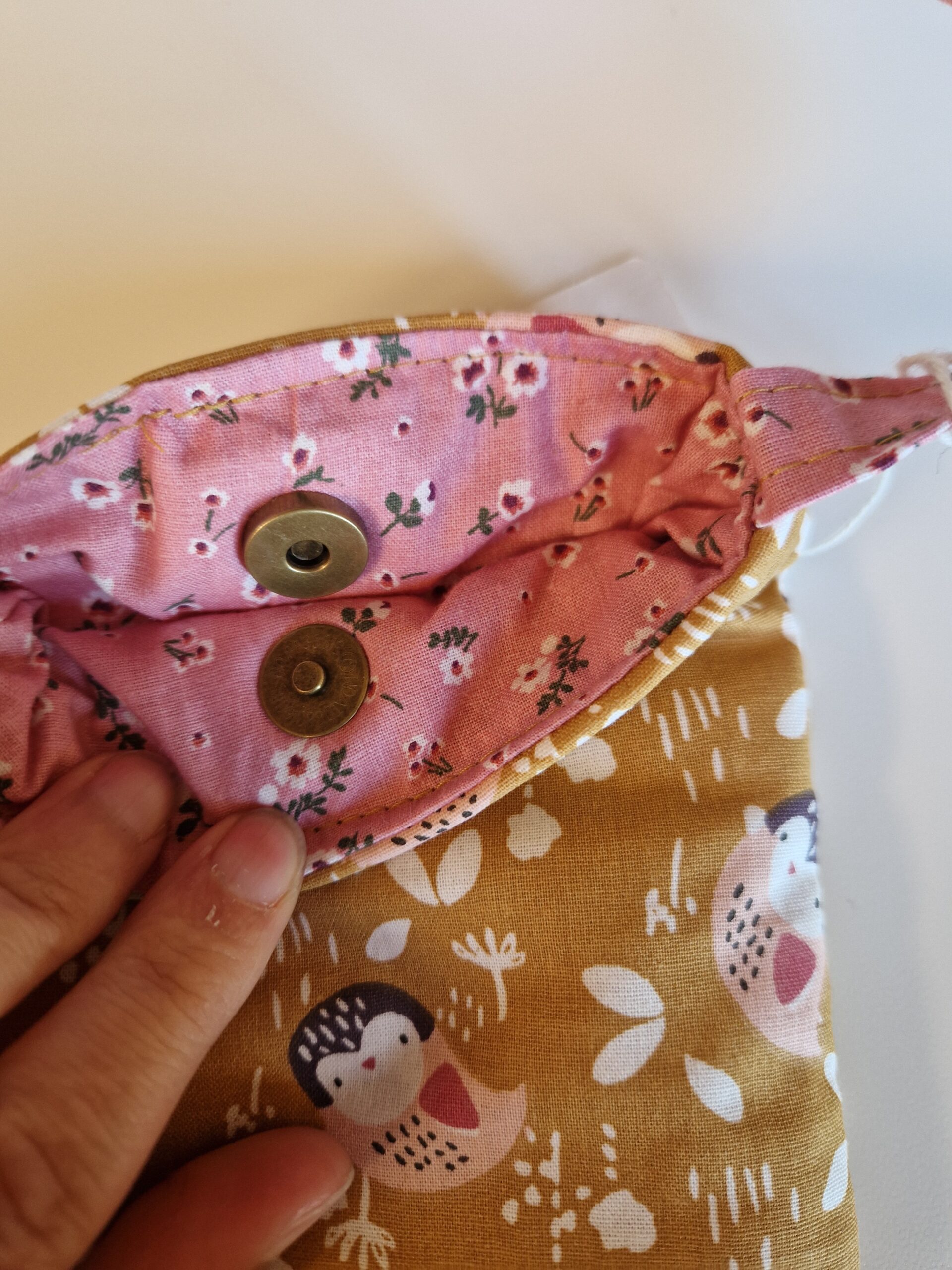 Petit sac, pochette, sacoche pour transporter votre téléphone portable partout avec vous. Il est légèrement rembourré pour protéger votre appareil et entièrement doublé d’un tissu assorti. Il se ferme grâce à un bouton pression aimanté.